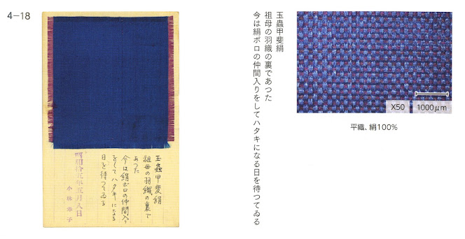 この冊子を開いてみると、小林孝子さんが集めた214点の端切れの写真には、手書きのコメントが添えられ、衣服や布が家族の思い出と深く結びついている様子がわかります。